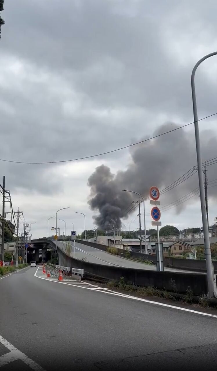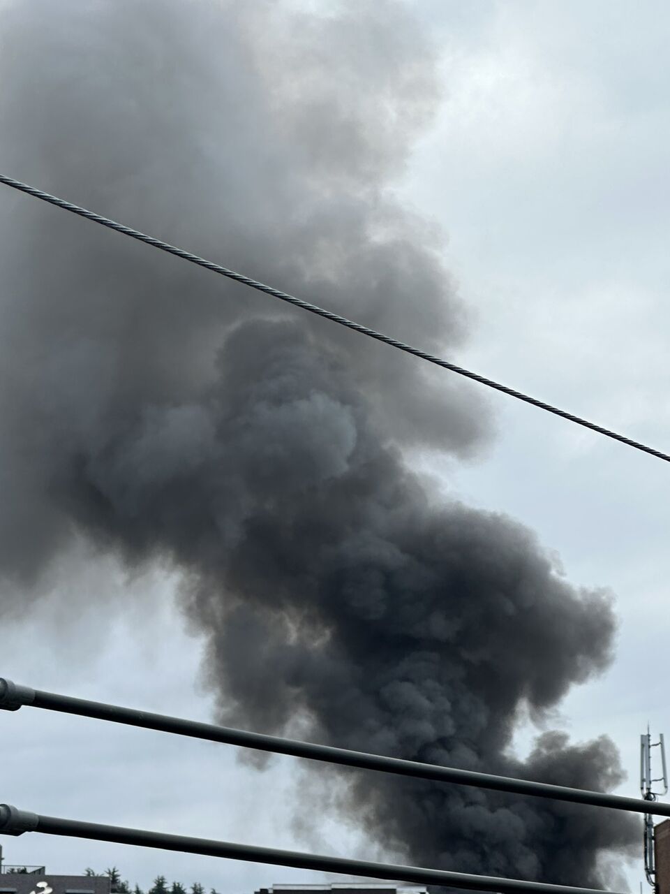 和泉多摩川から登戸方面見たら黒い煙がもくもく湧いている😱