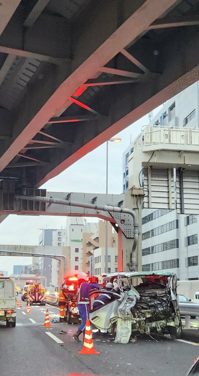 【現場の様子】#交通情報 #首都高 1号羽田線 浜崎橋JCT付近 車両大破事故で規制渋滞11月11日 #渋滞 #首都高 #港区