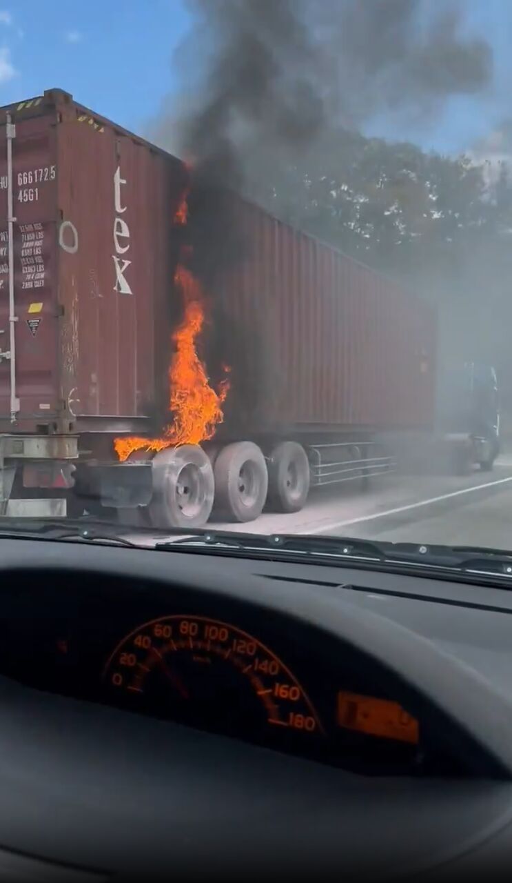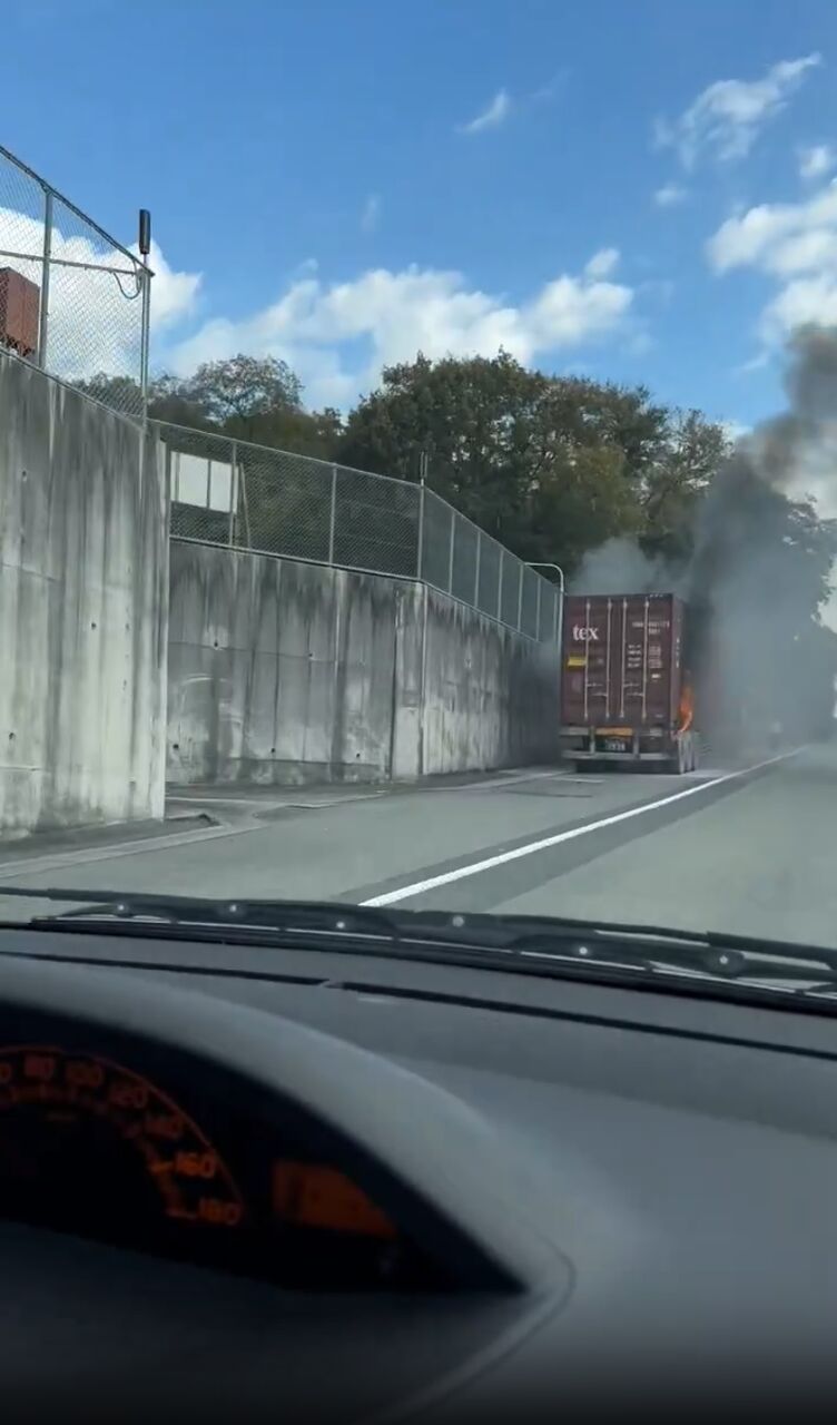 【現場の様子】#交通情報 #国道29号 南行き 兵庫県姫路市林田町林谷付近 大型トレーラー燃える車両火災事故で一時交通規制11月11日 #兵庫 #姫路 #火災