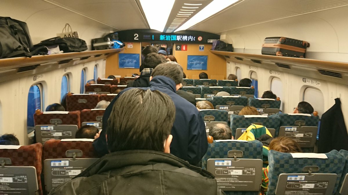 『新幹線に乗ってんけど通勤ラッシュ状態』