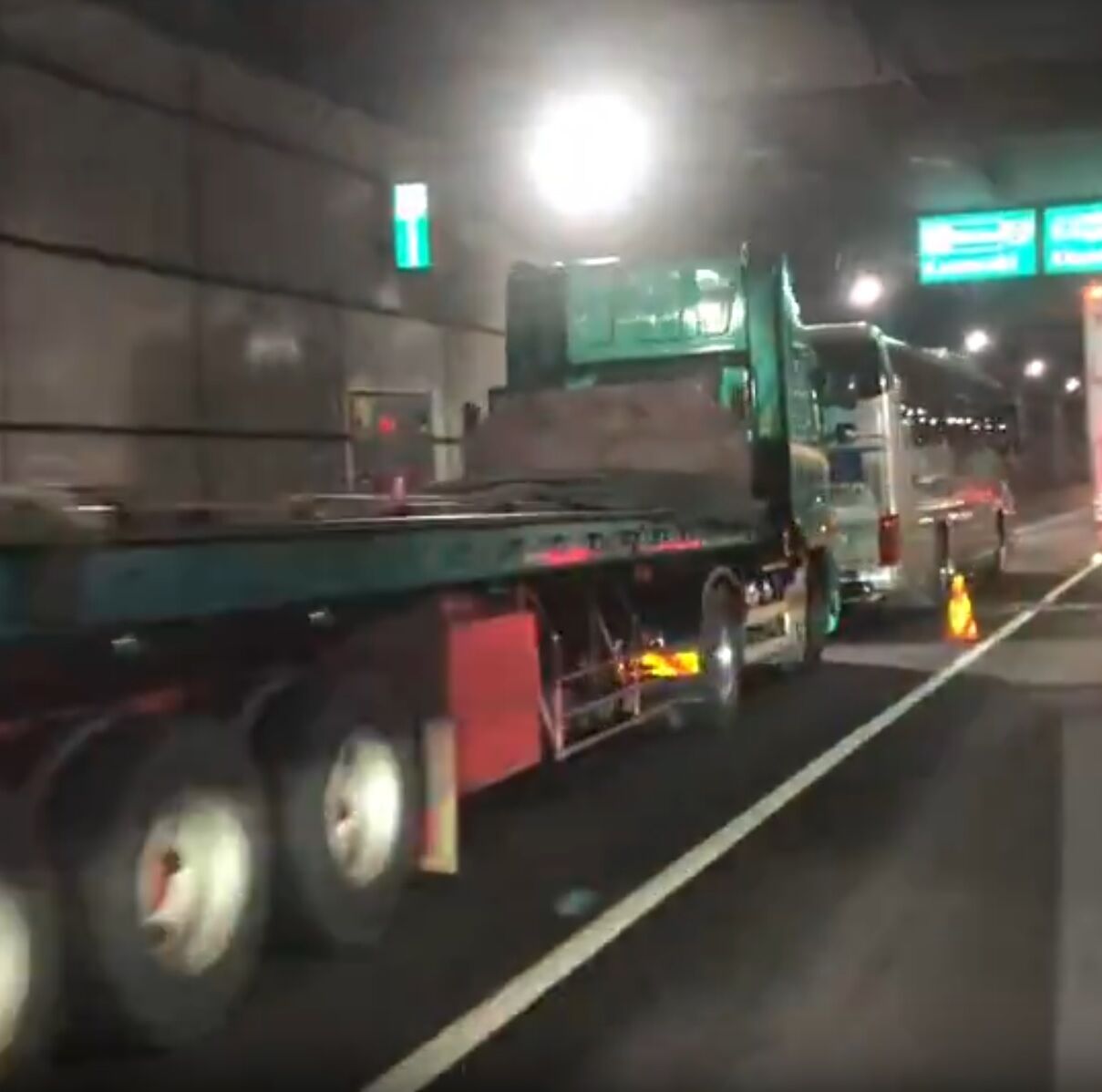 【現場の様子】#交通情報 #首都高 湾岸線 東行き 川崎航路トンネル付近 トレーラーと大型バス追突事故で規制渋滞11月12日 #渋滞 #川崎 #アクアライン