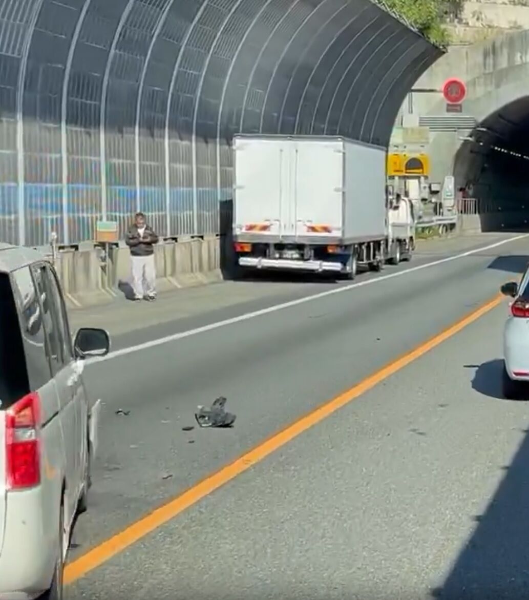 【現場の様子】#交通情報 #名神高速 左ルート 上り 天王山トンネル付近 車線塞ぐトラック乗用車3台追突事故で規制渋滞11月12日 #渋滞 #名神 #京都 #大阪