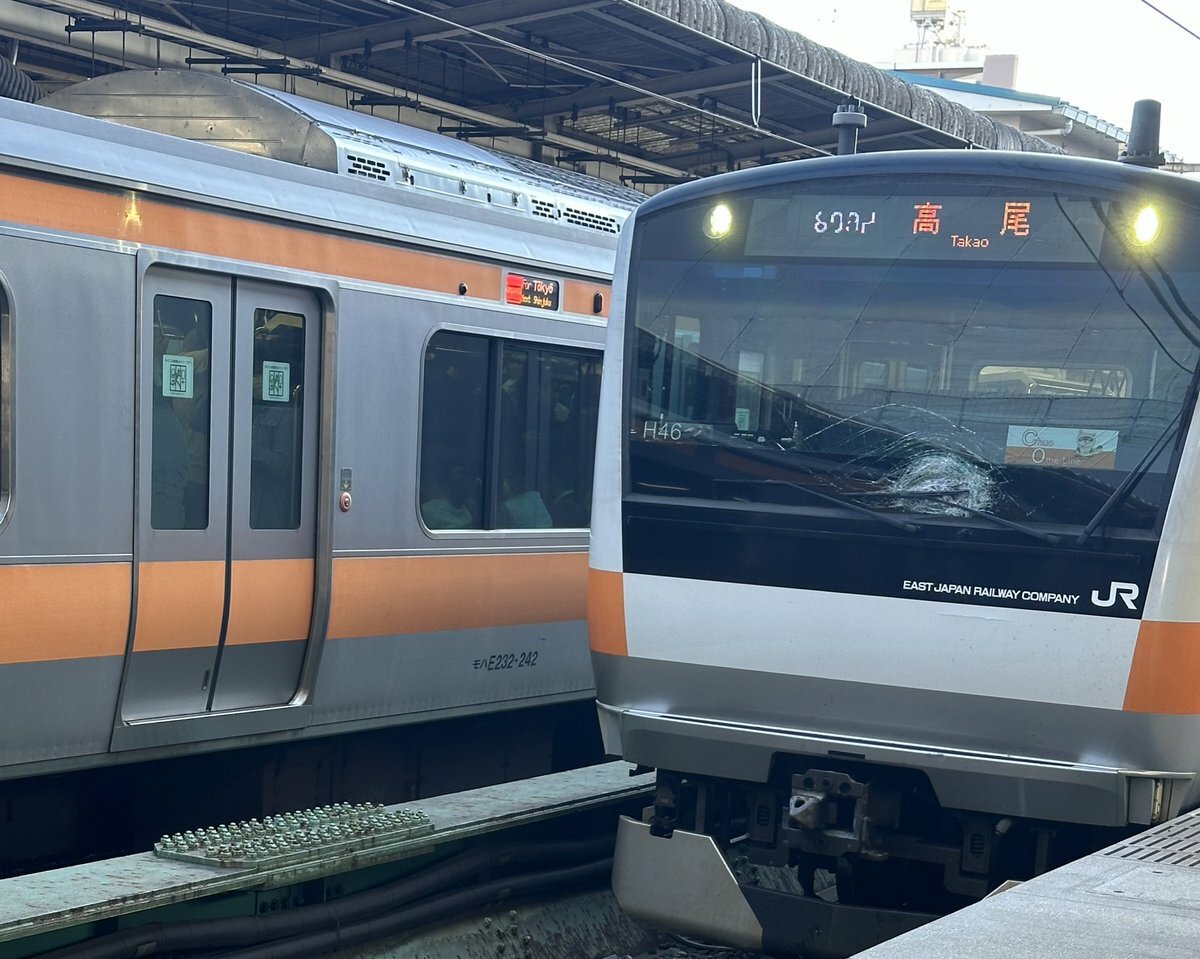【現場の状況】『中央線車両のフロントガラス破損』#中央線 中野駅で人身事故 #総武線 #東京メトロ東西線 特急あずさかいじなど遅延11月13日 #中野