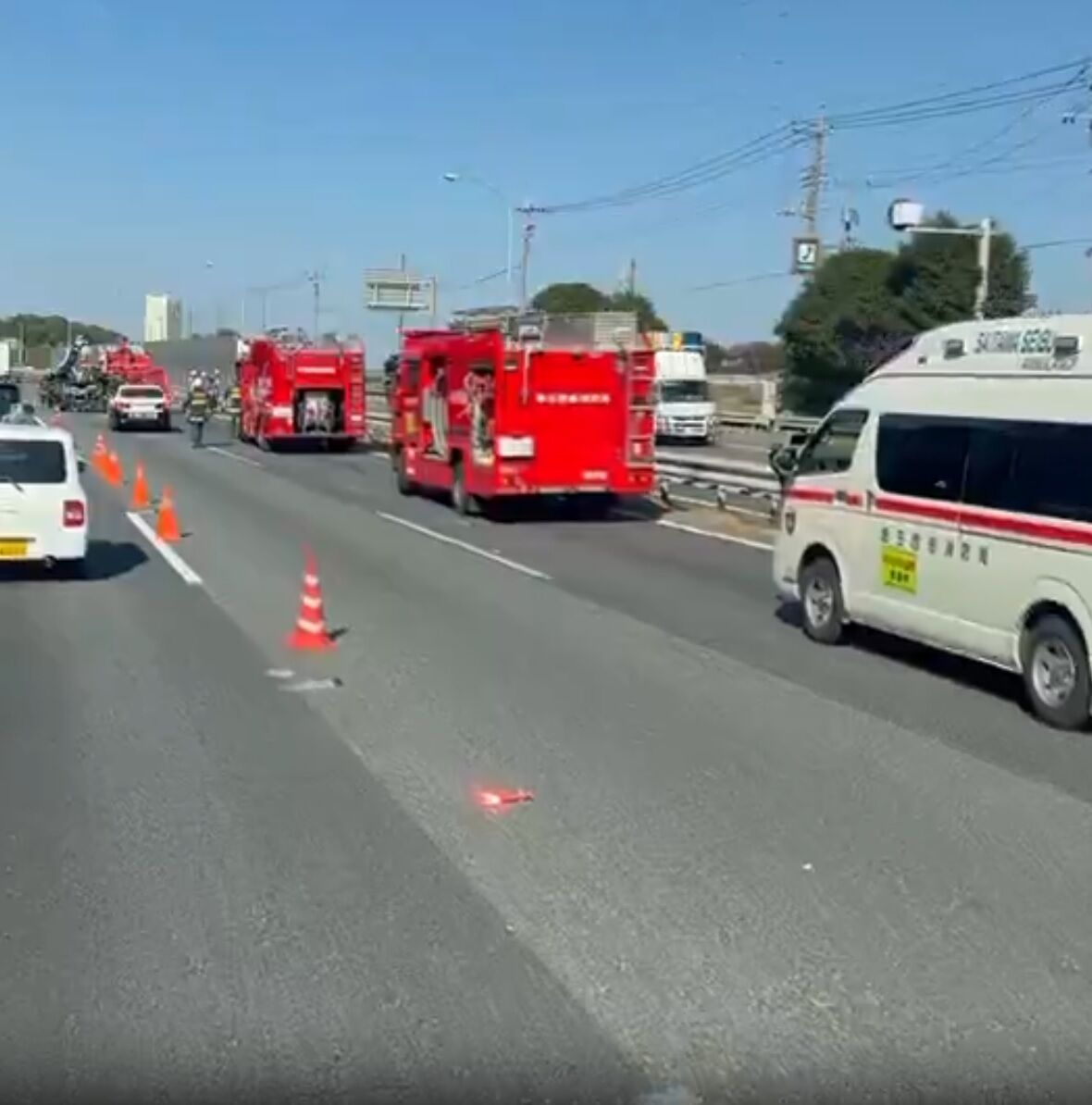 『所沢IC~三芳PA間横転事故レスキューによる救助活動中