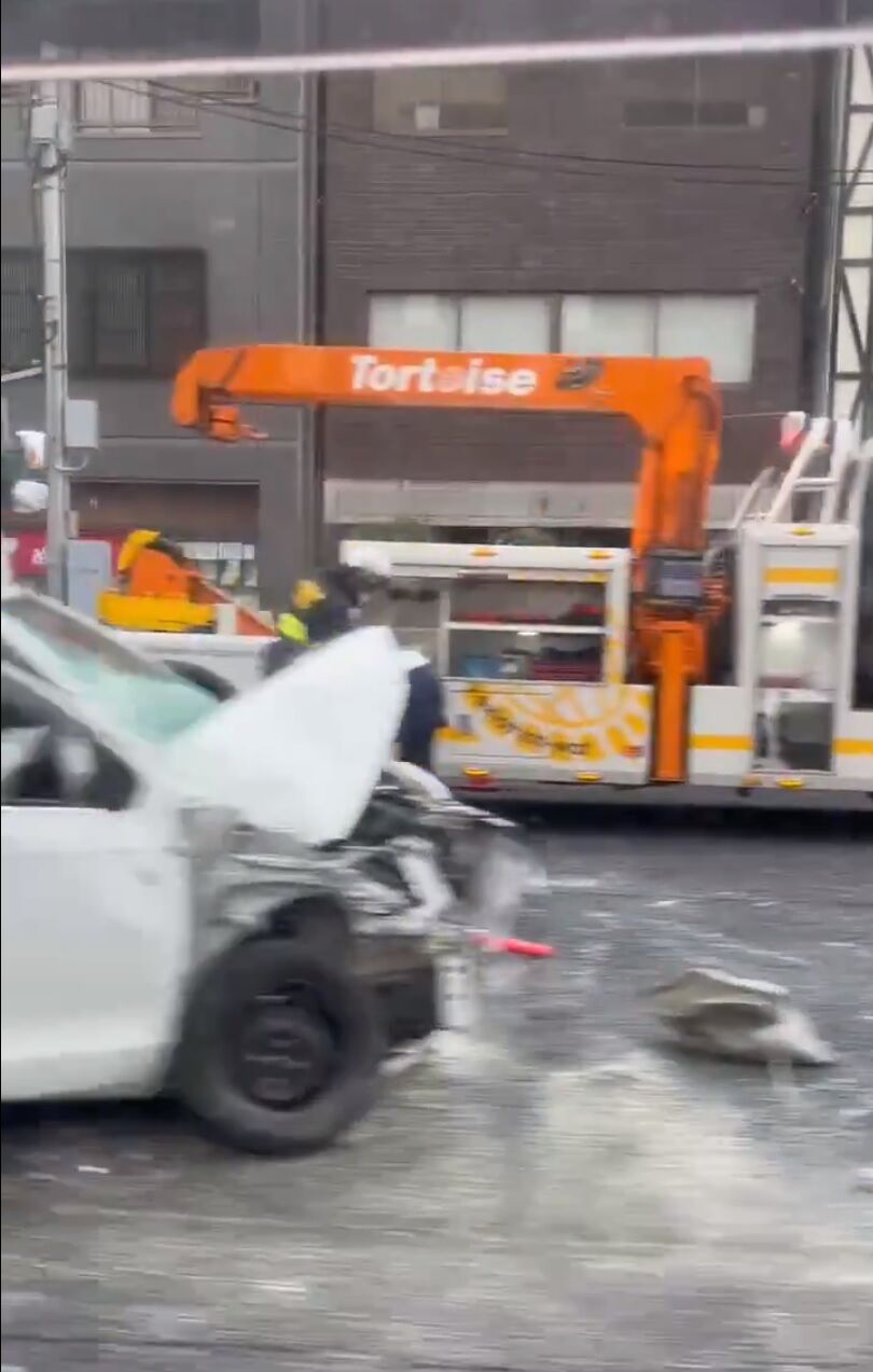 【現場の様子】#交通情報 #国道6号 水戸街道 東京都墨田区向島3丁目付近 車線塞ぐ軽自動車大破事故で上下線規制渋滞3月8日 #渋滞 #墨田区 #曳舟 #浅草