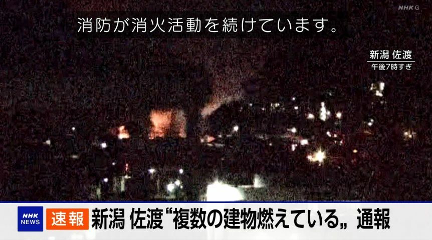【火事情報】新潟県佐渡市春日付近 建物から火の手あがる火災 複数の建物が燃えている通報11月13日 #新潟 #佐渡 #火災