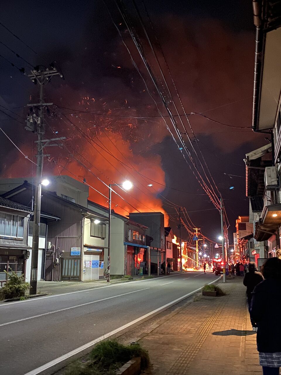 午後7時現在も炎上しています。佐渡市春日で店舗兼住宅が炎上中です。