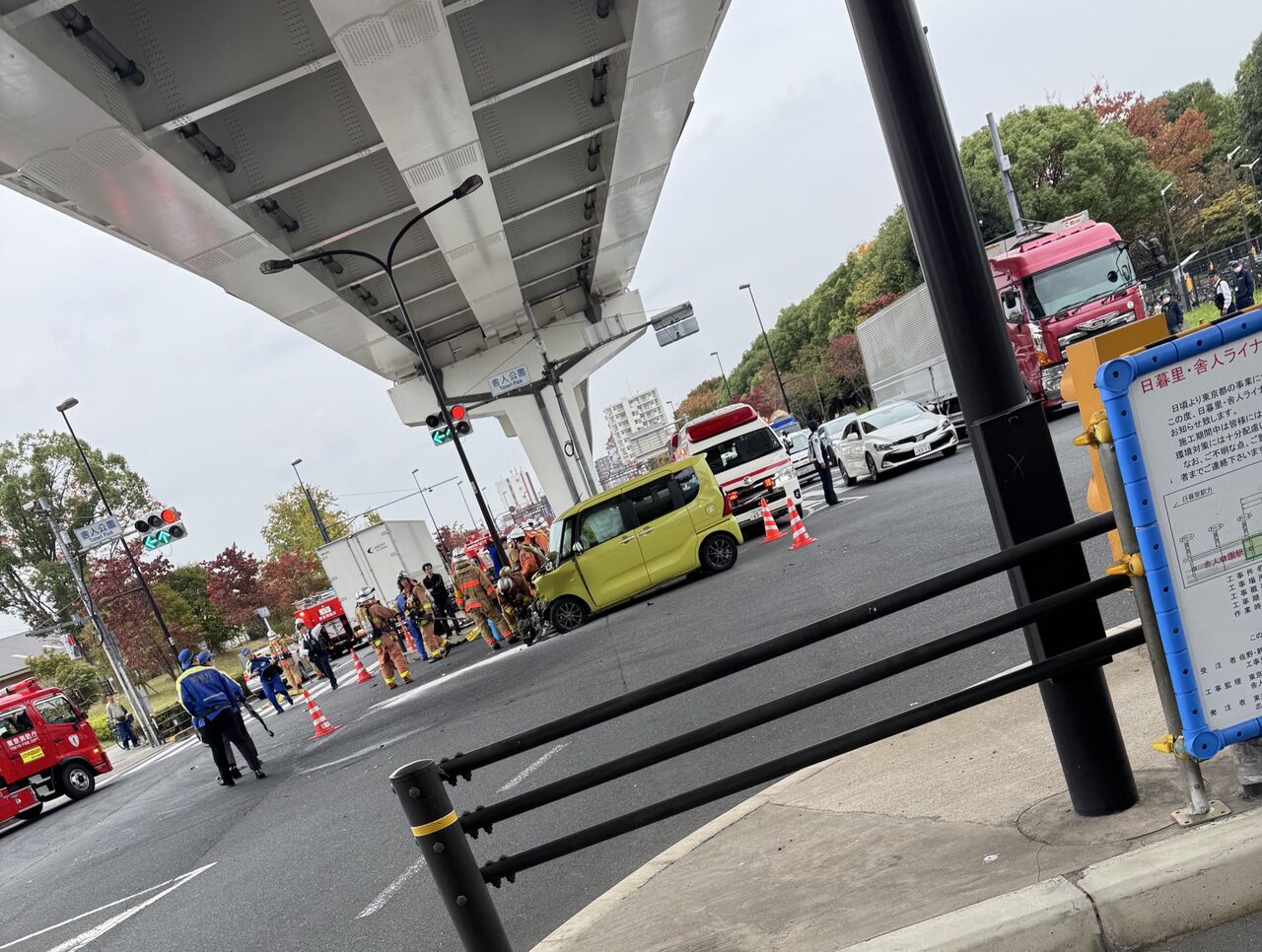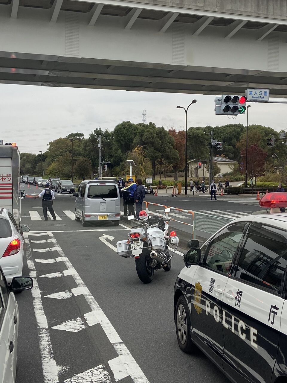 『舎人公園で派手に事故してるのでお気を付けて』