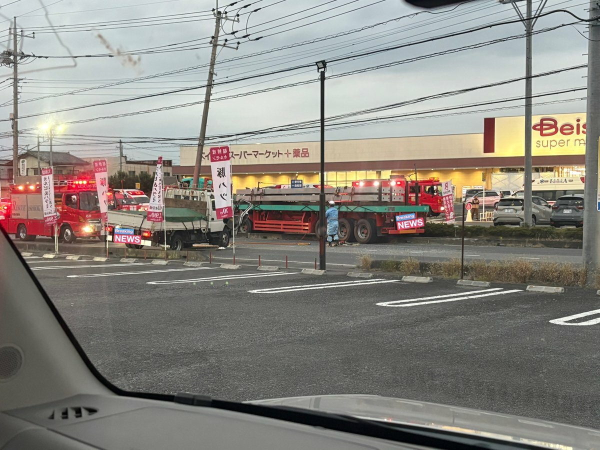 【現場の様子】#交通情報 #国道355号 茨城県石岡市東光台 ベイシア付近 電柱追突大型トレーラやトラック絡む衝突事故で一時通行止め渋滞11月14日 #渋滞 #通行止 #茨城 #石岡