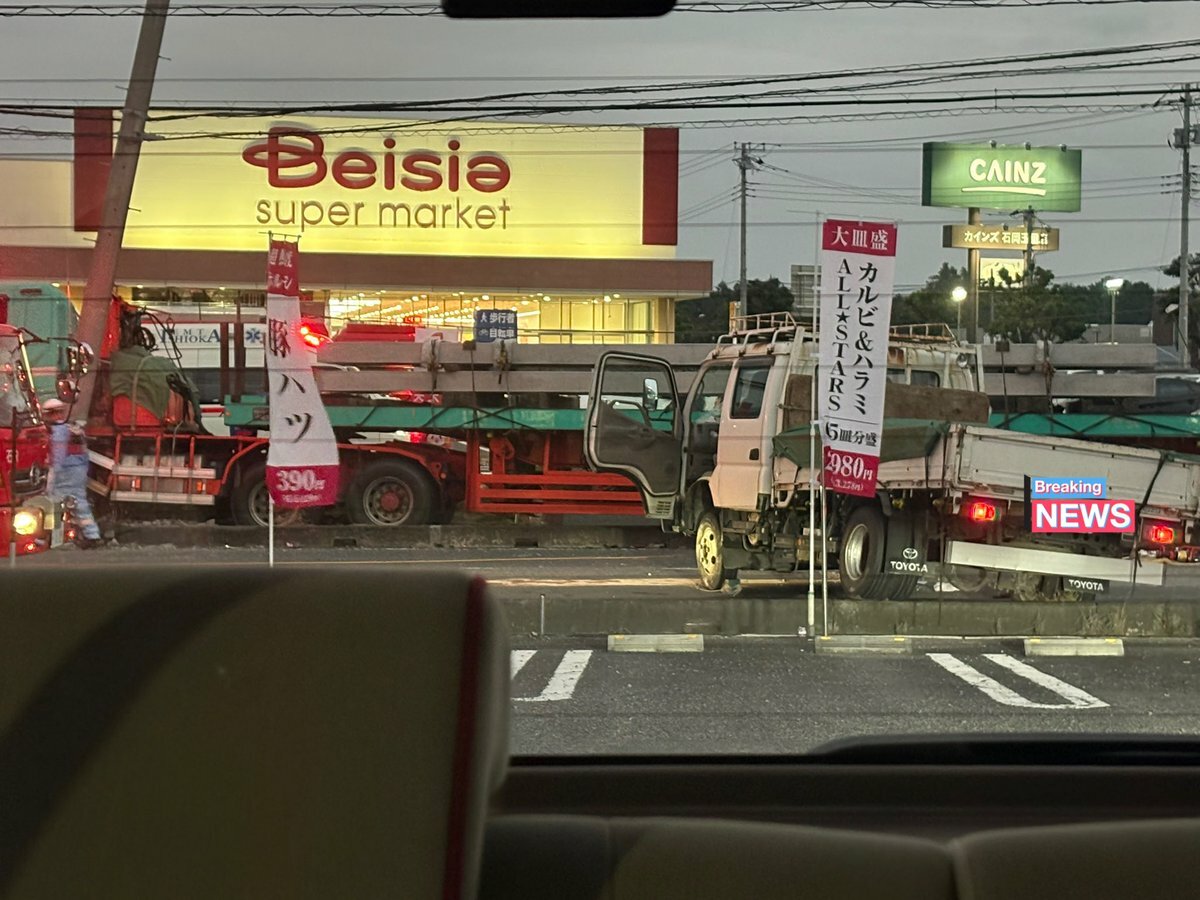『石岡市のベイシア前でかなりでかい事故で355号通行止め
