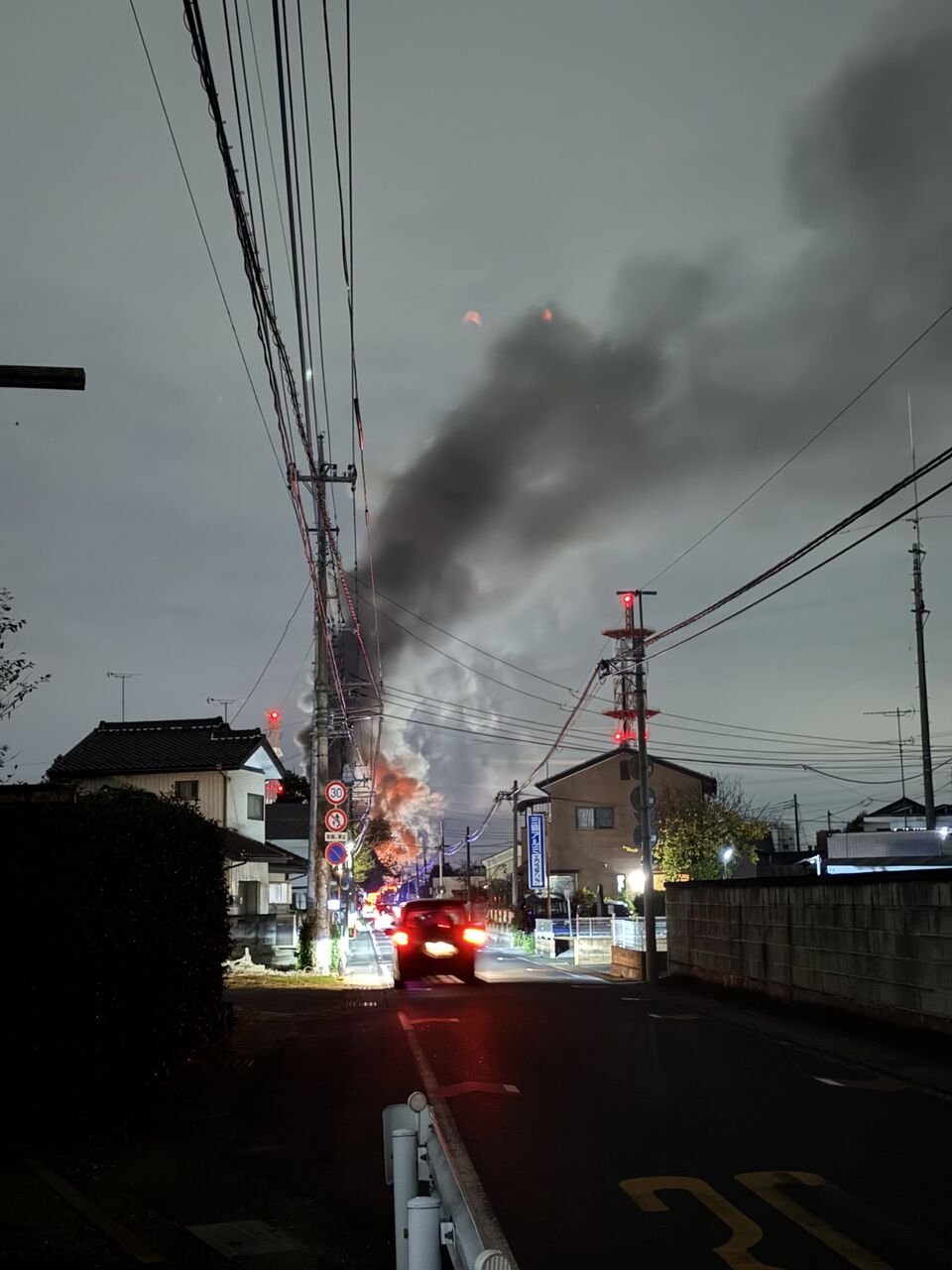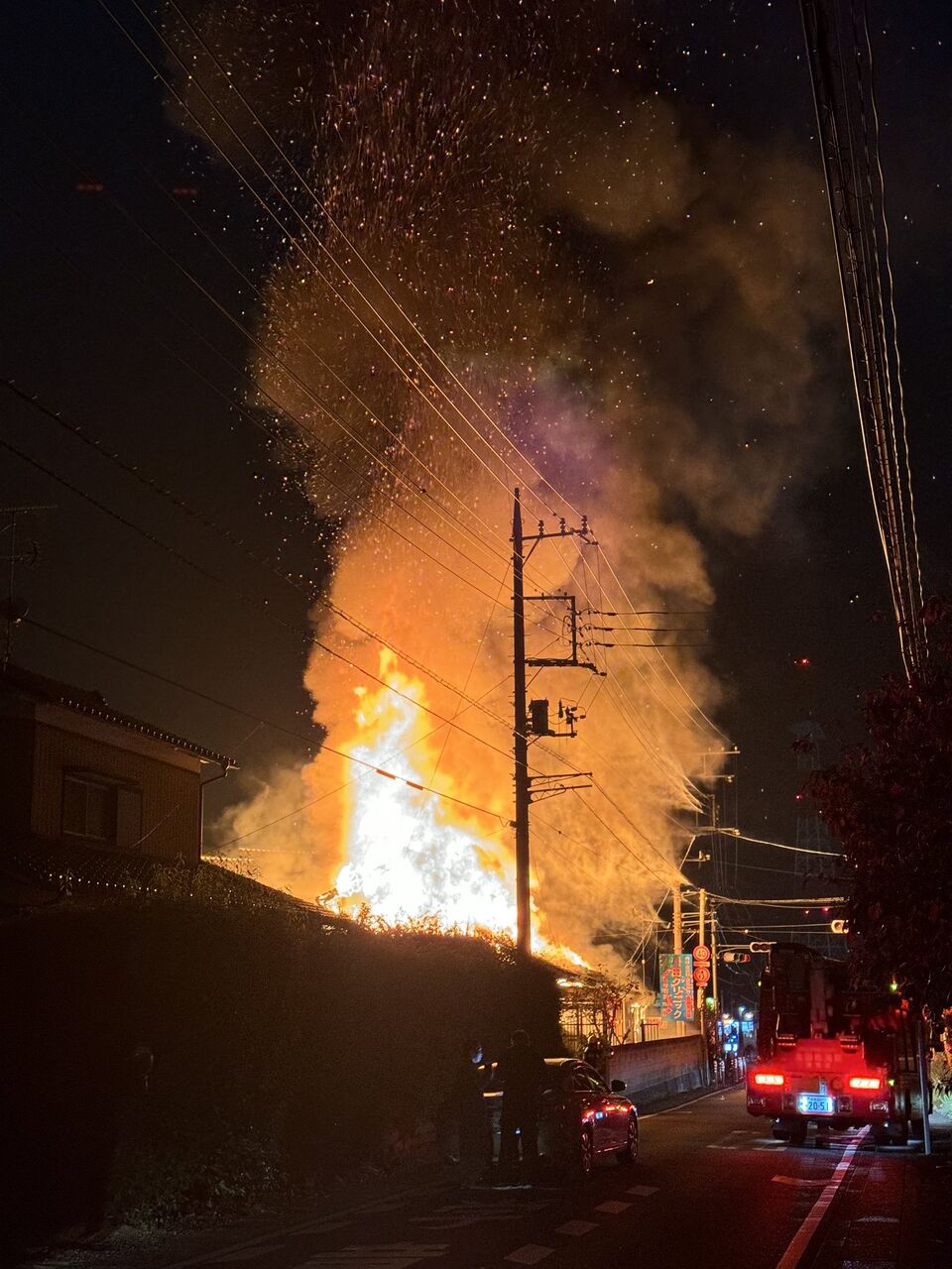 【火事情報】群馬県太田市由良町 宝泉小学校南側交差点付近 建物から激しい炎あがる火災11月14日 #群馬 #太田 #火災
