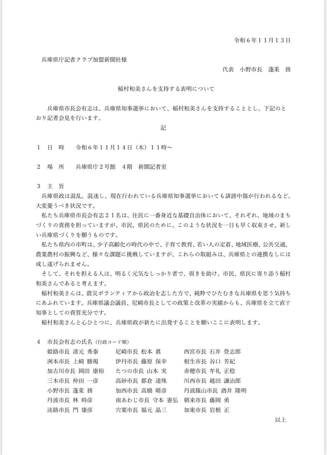 【緊急速報】兵庫県で反斉藤元彦連合成立。。。 2024/11/15 速報 1: 兵庫県29市中21市長が対抗候補の支持表明 document.write(” + ”); 関連記事 document.write(” + ”); 続きを読む ——— Source: アルファルファモザイク 【緊急速報】兵庫県で反斉藤元彦連合成立。。。