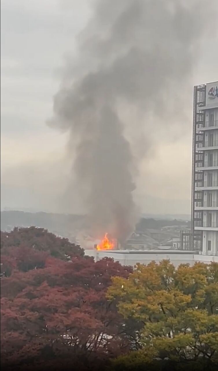 【火事情報】大阪府羽曳野市羽曳が丘2丁目 城山病院南側付近 住宅建物から火の手あがる火災 周辺道路一時交通規制渋滞11月15日 #大阪 #羽曳野 #火災