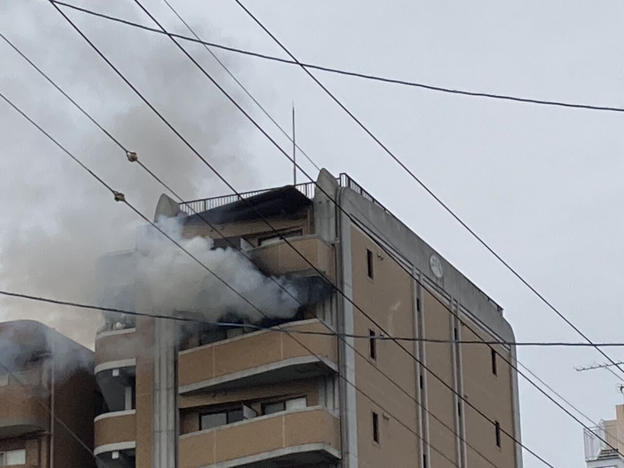 【火事情報】京都府京都市下京区七条御所ノ内南町 #JR京都線 西大路駅北側付近 集合住宅マンションから黒煙あがる火災11月15日 #京都 #西大路 #火災