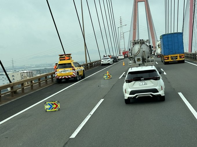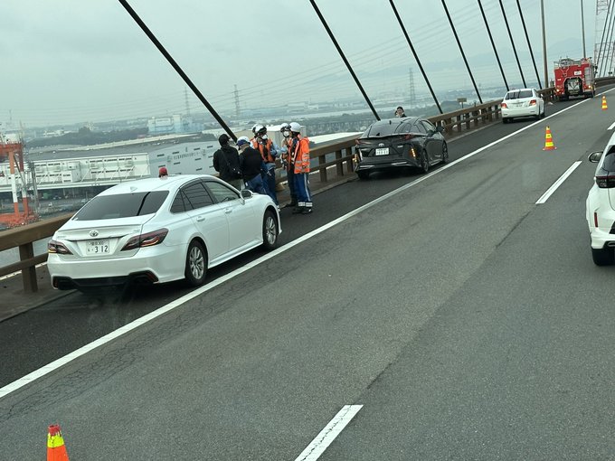 【目撃証言】#交通情報 #伊勢湾岸道 下り 名港西大橋名港トリトン付近に運転手不在の黒い乗用車放置 持ち主が橋の上から海に飛び込んだ可能性 周辺道路一時渋滞11月15日 #渋滞 #名古屋