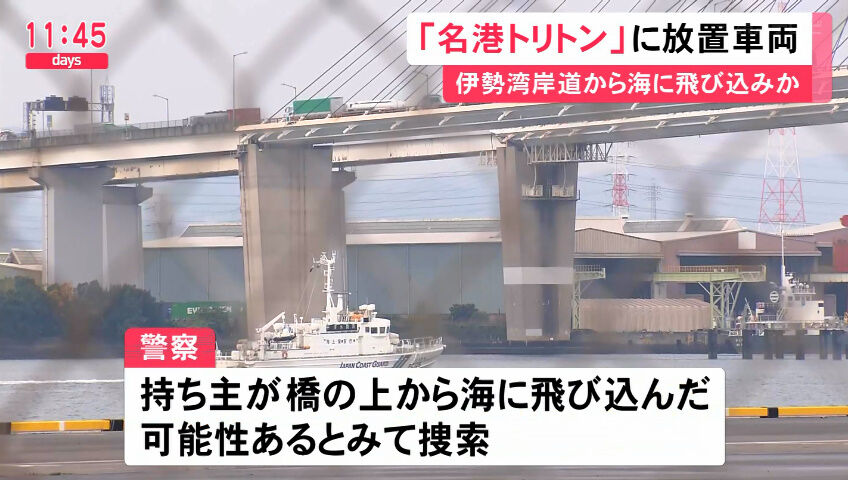 港区の伊勢湾岸道下りの名港西大橋で15日午前6時すぎ、「車が止まっている。運転手がいない」と通りがかった車に乗る人から110番通報がありました。