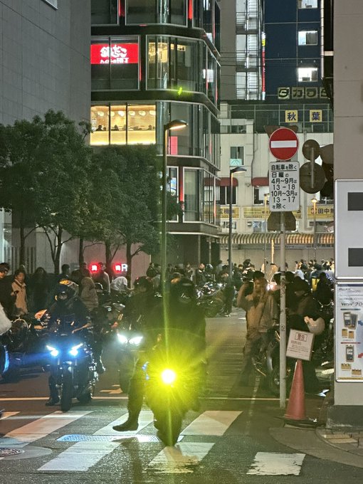 秋葉原手のバイク集団警察、消防、救急車両に囲まれてるんだが何したんだ…