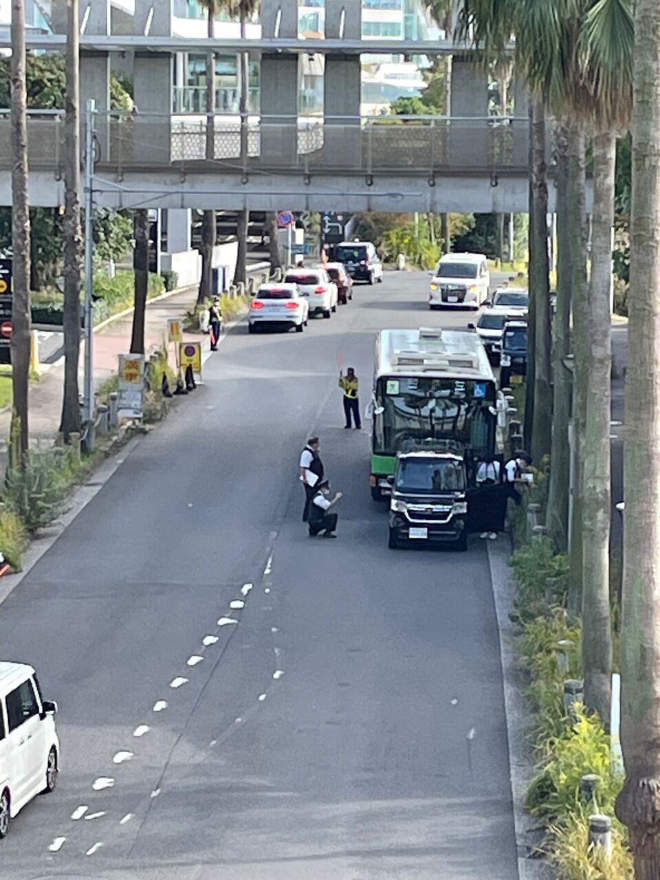 【現場の様子】#交通情報 東京都江東区有明3丁目東京ビッグサイトと有明客船ターミナル付近 都営バスと乗用車の接触事故で一部交通規制11月17日 #コミティア #デザフェス #都バス