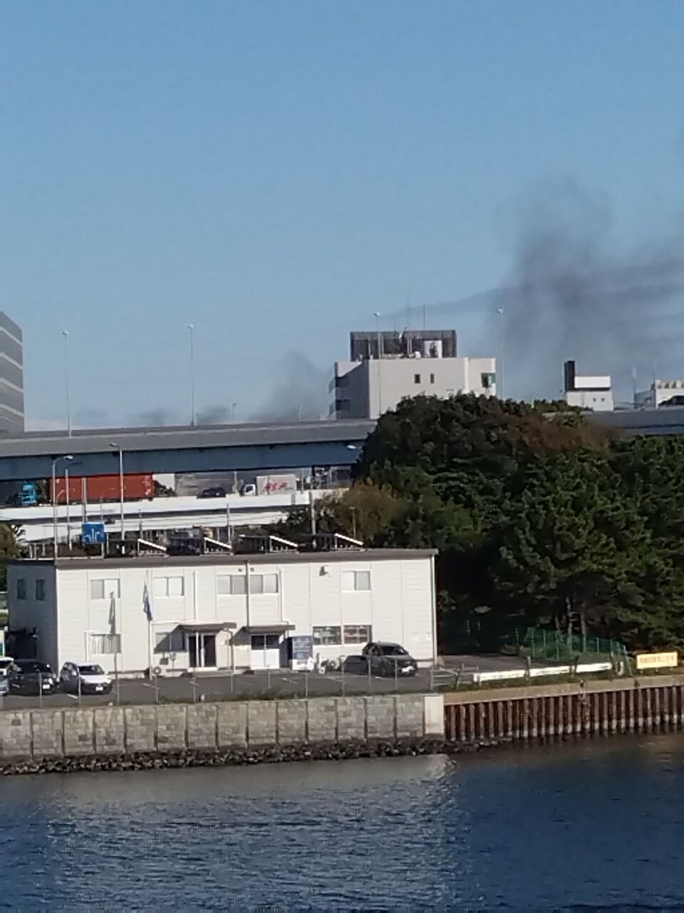 城南島のファミマ裏辺りから黒煙吹いてて草