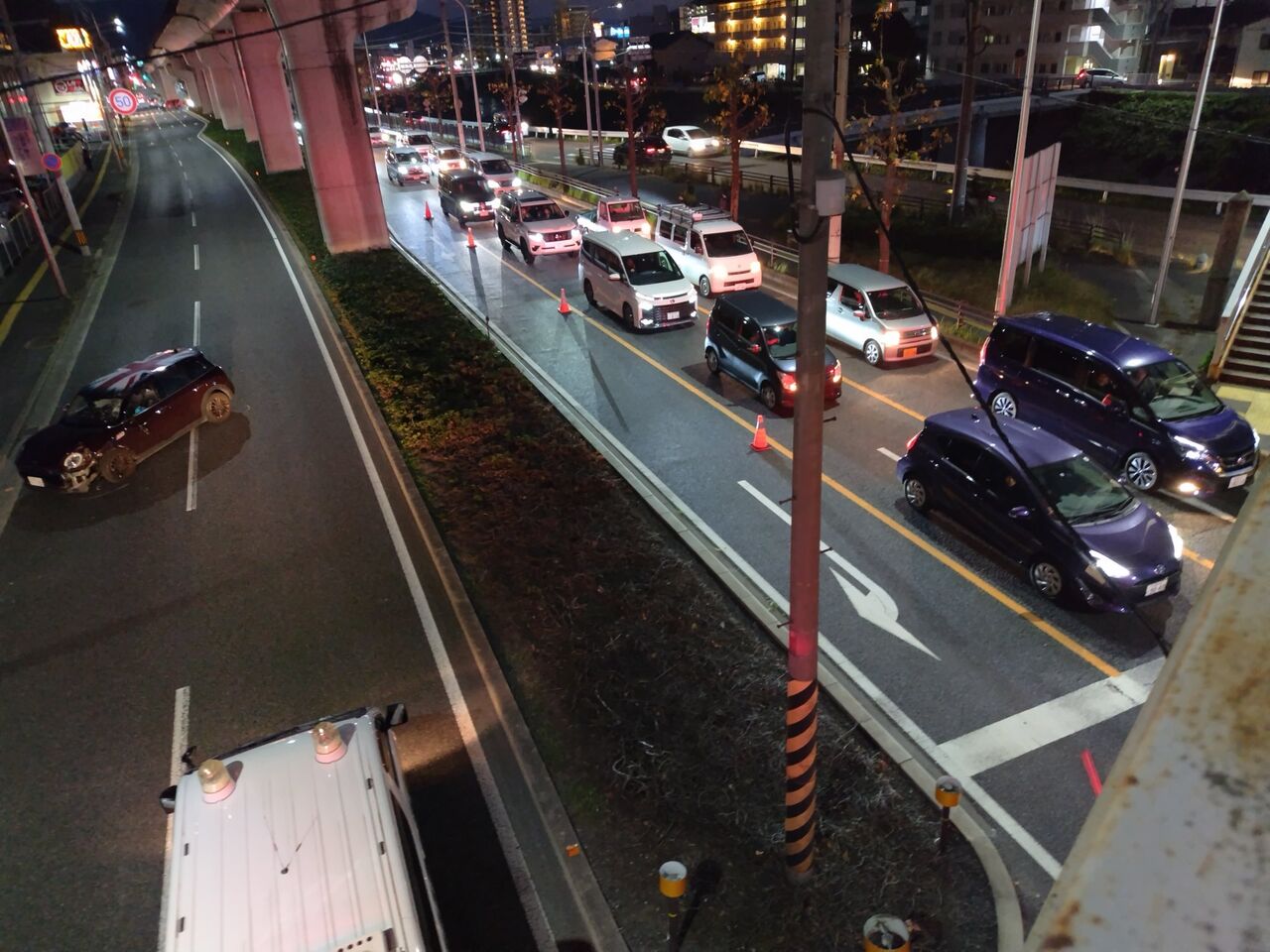 通行止めなってるので大渋滞』