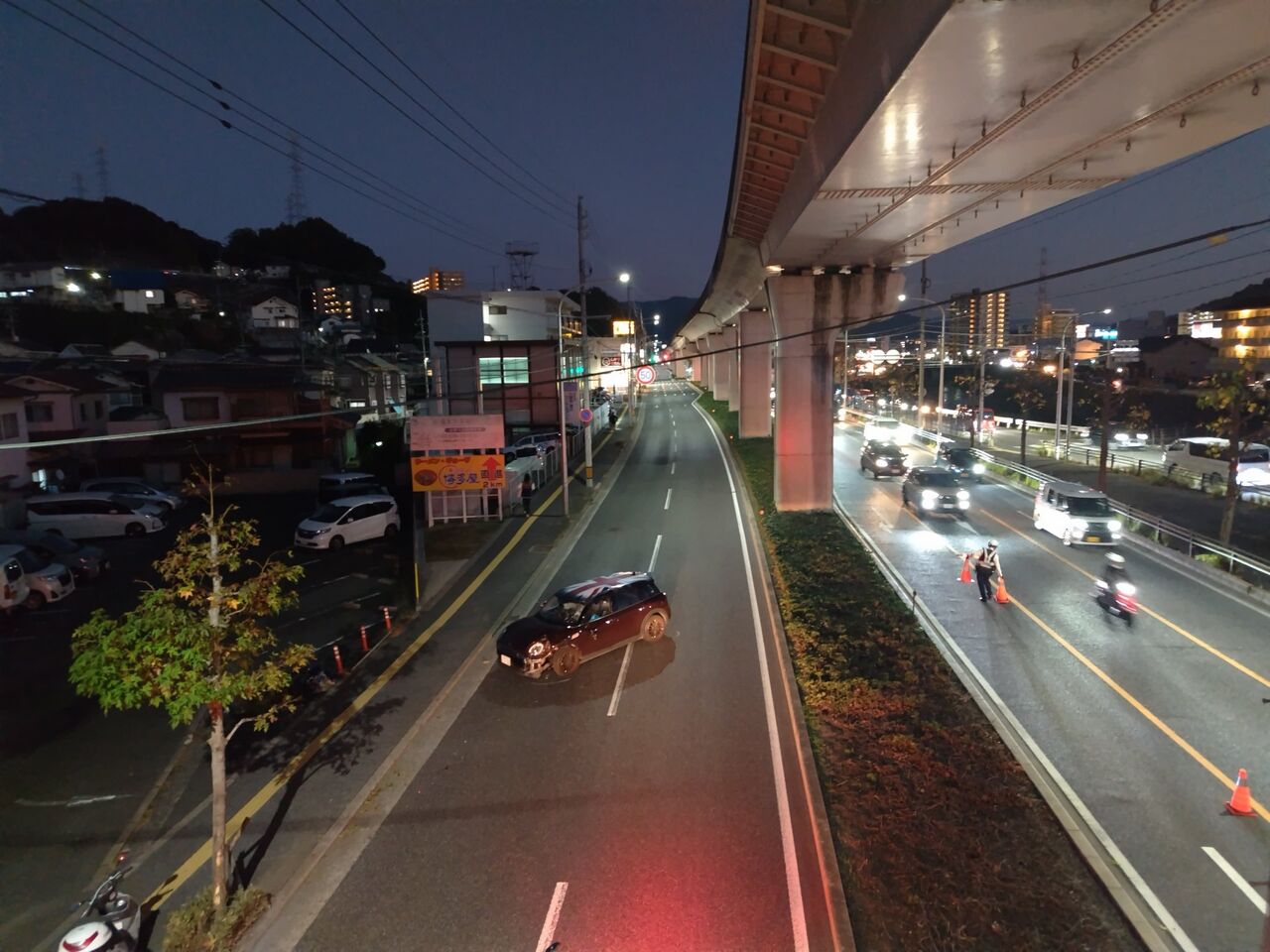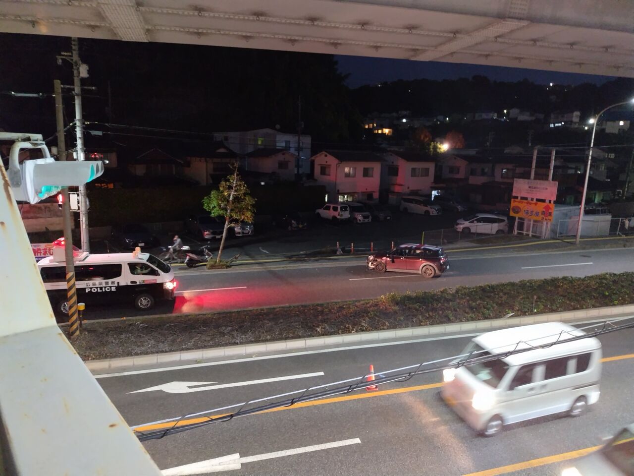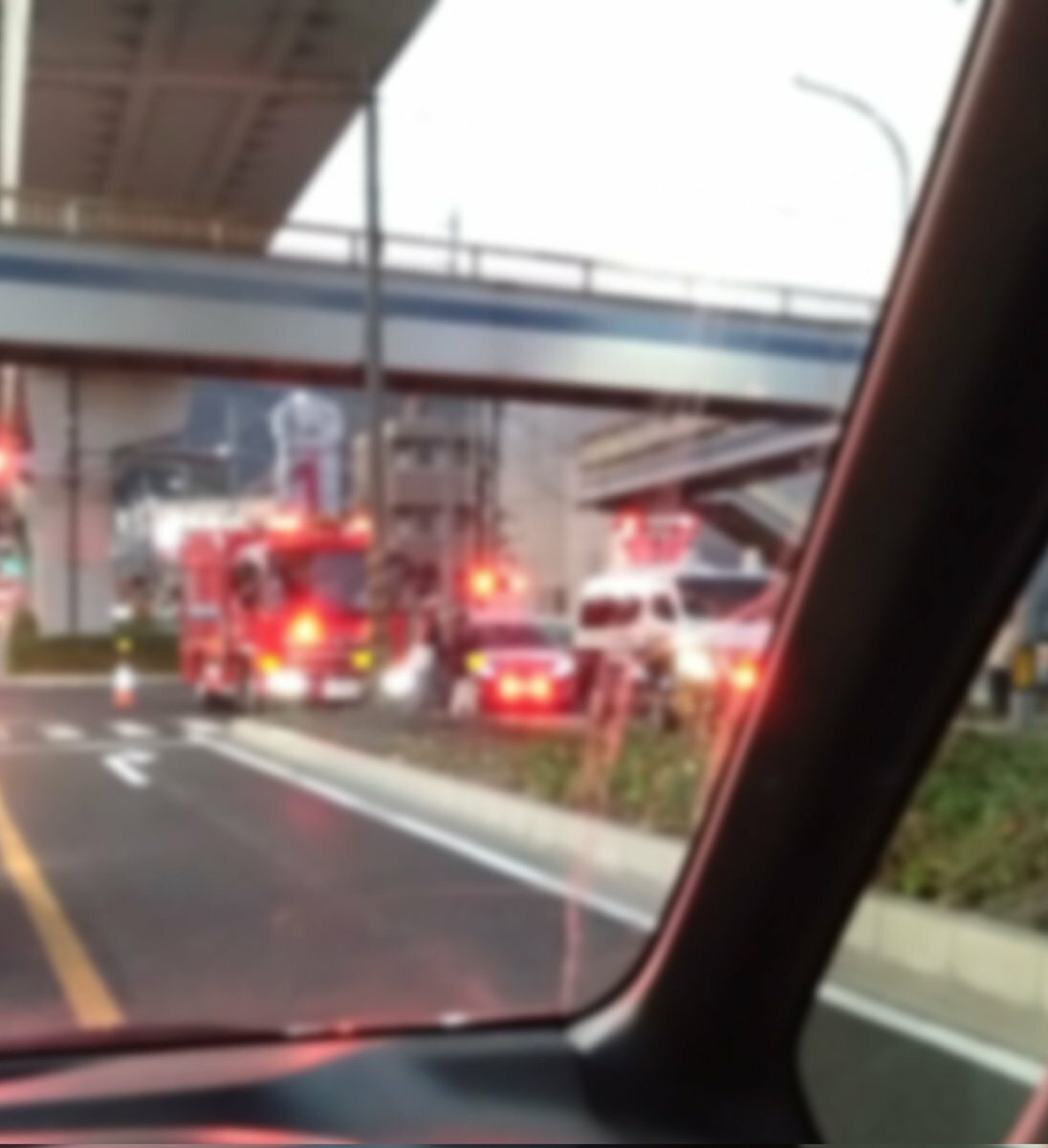 【現場の様子】#交通情報 県道38号 上り 広島市安佐南区安東1丁目 アストラムライン沿い安東駅~毘沙門台駅付近 事故で一時通行止め渋滞11月20日 #渋滞 #通行止 #広島