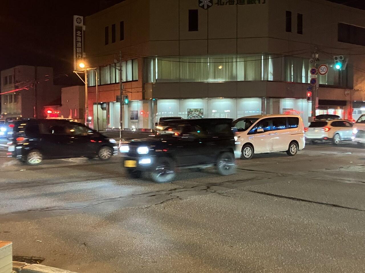『北光線と24条通のぶつかった道銀前事故で混雑してます。』