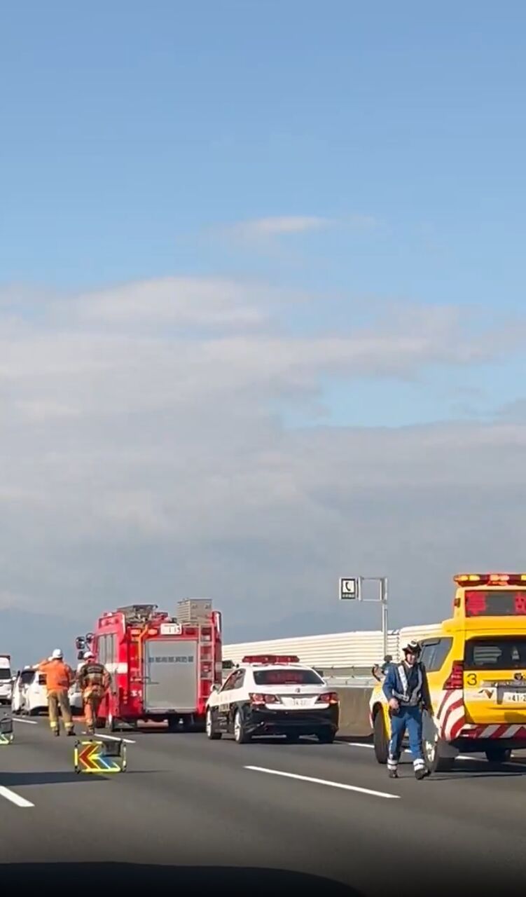 『中央と追い越し車線規制かな救急車2台行ったわ相当やってんね』