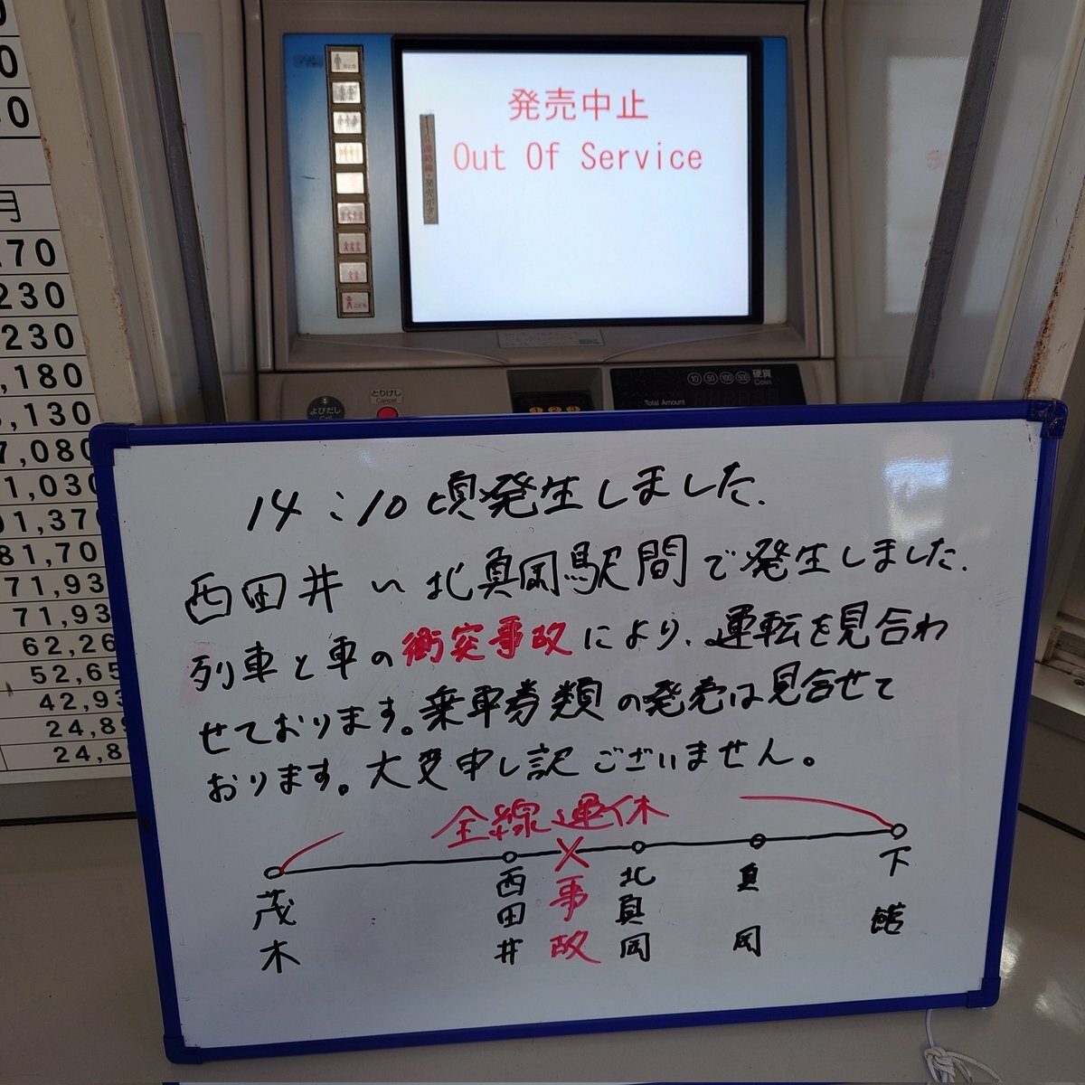 真岡鐵道、真岡駅の駅員さんによると車との接触事故のため運転見合わせ