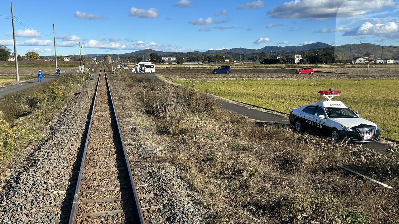 【現場の状況】『最前にいたら目の前に車が入って来た、列車と接触事故』#真岡鐵道真岡線 西田井〜北真岡駅付近で踏切事故により運転見合わせ遅延11月23日 #真岡鐵道