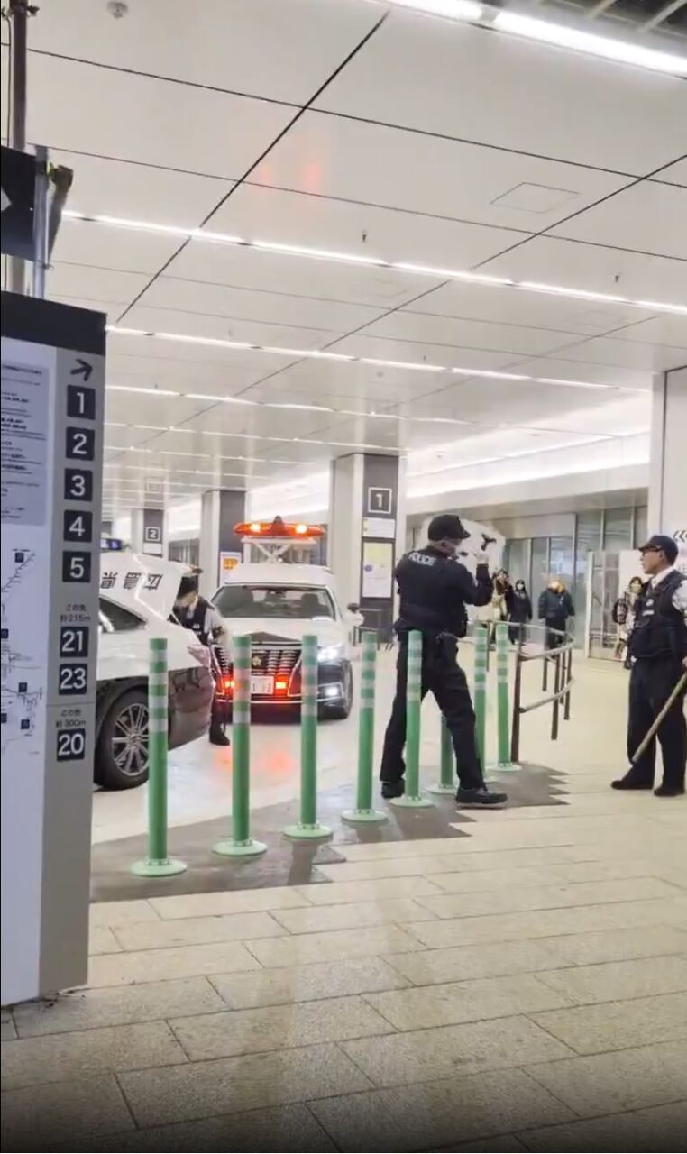 『警棒とシールドを持った警官か新幹線口に、なにか起こった?』