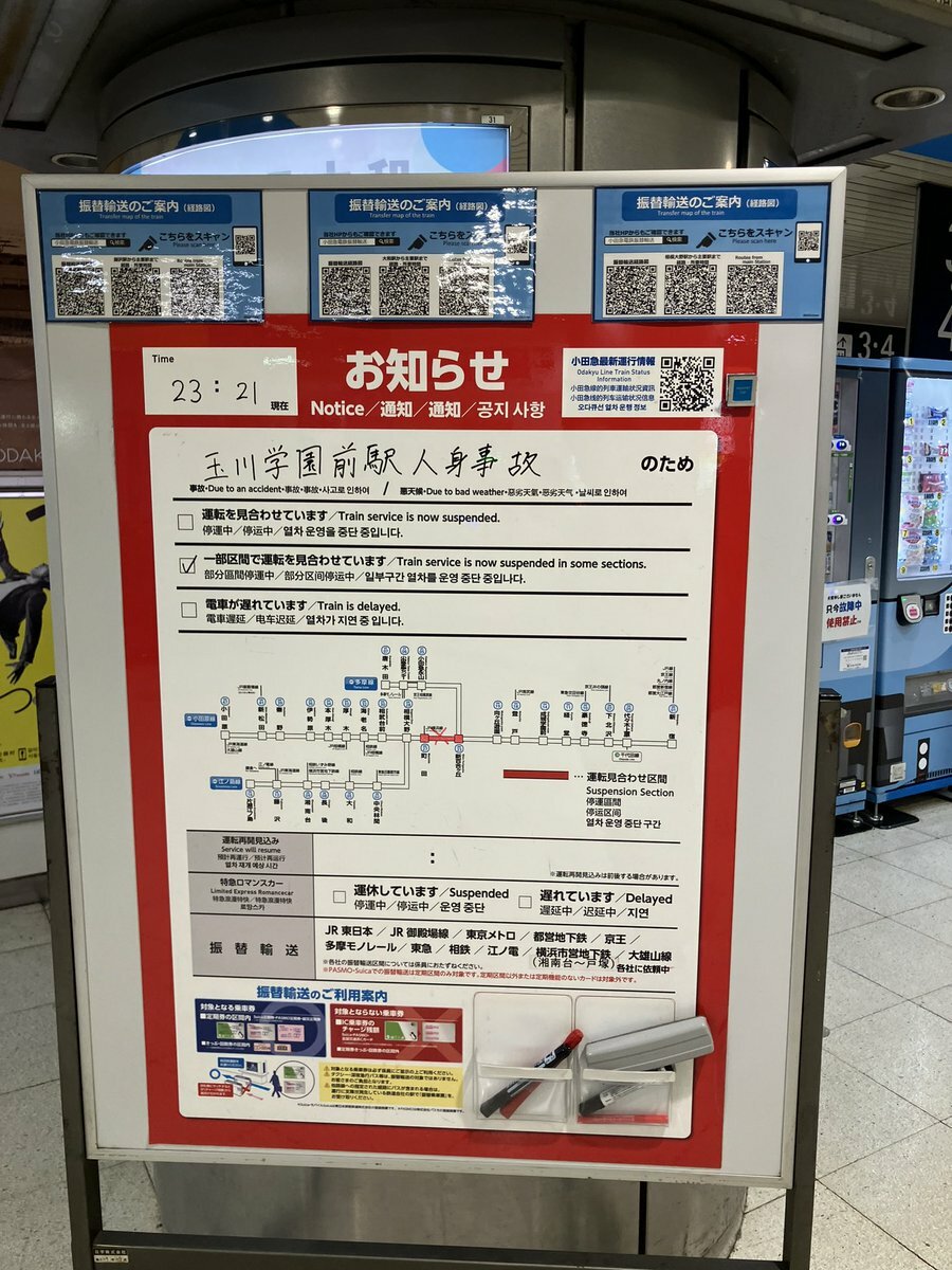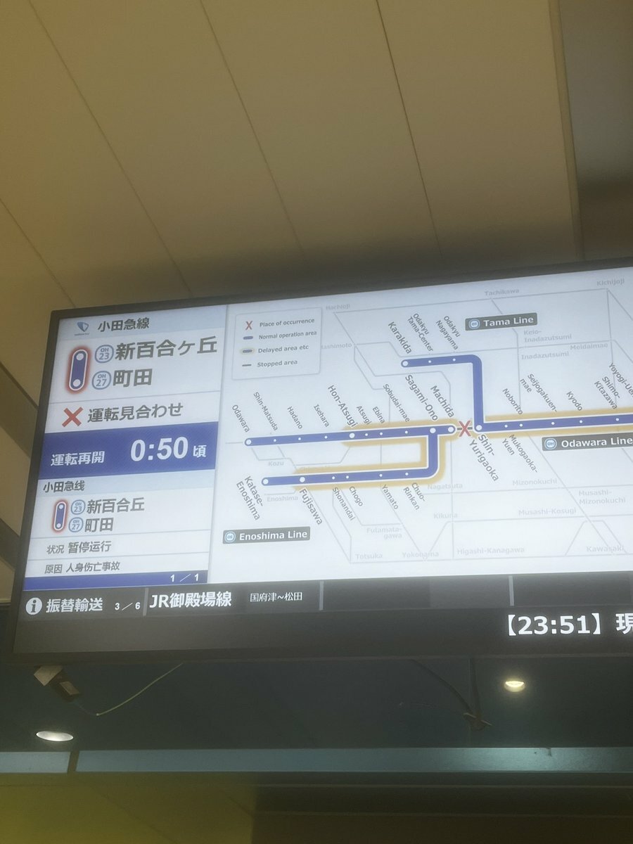 運転再開見込みは0:50の予定ですのでこのまま列車ホテルかなぁ〜#小田急 #人身事故 #新宿 pic.twitter.com/uUzMPtuCxi— 八王子交通ch (@Kannaieki) November 24, 2024