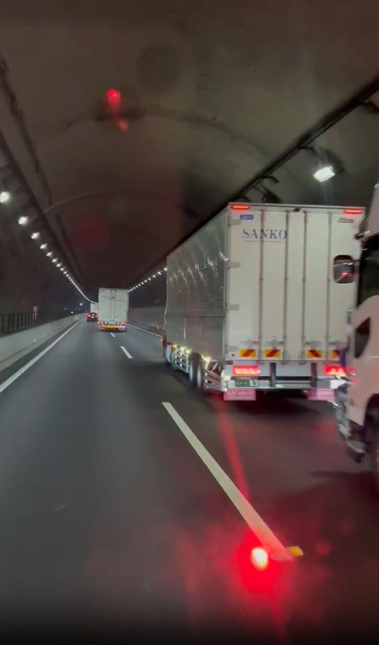 『圏央道外回り愛川インター過ぎてのトンネル中で関西から来たバカ大型トラック2台による事故の為追越車線塞がってますから気をつけて下さい』