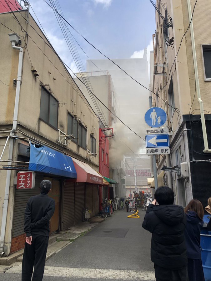 【火事情報】兵庫県神戸市兵庫区湊町1丁目 #山陽本線 神戸駅南側 湊町一丁目交差点付近 飲食店建物から煙あがる火災3月9日 #兵庫 #神戸 #火災