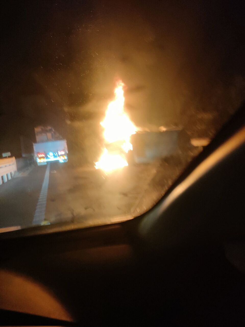 『山陽道下りの龍野近くで車燃えてる。