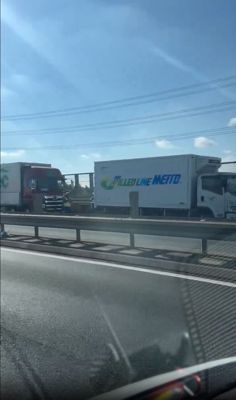 『圏央道通る方気をつけて狭山から鶴ヶ島の間トラック🚚3台やりたて事故