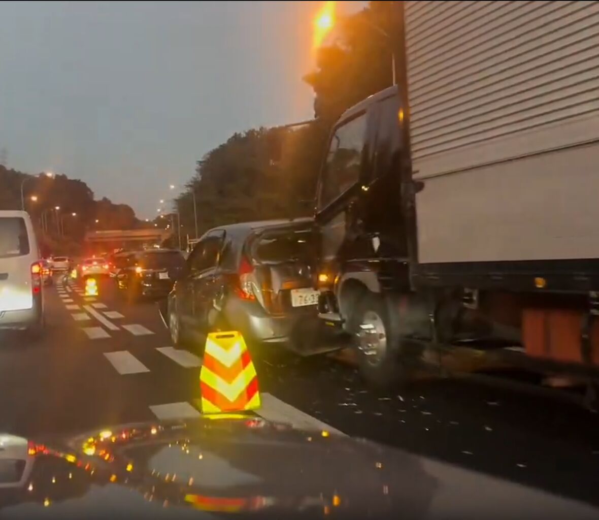 【現場の様子】#交通情報 小田原厚木道路 上り 大磯IC付近 トラックと乗用車絡む追突事故で規制渋滞11月27日 #渋滞 #小田原 #厚木 #小田厚