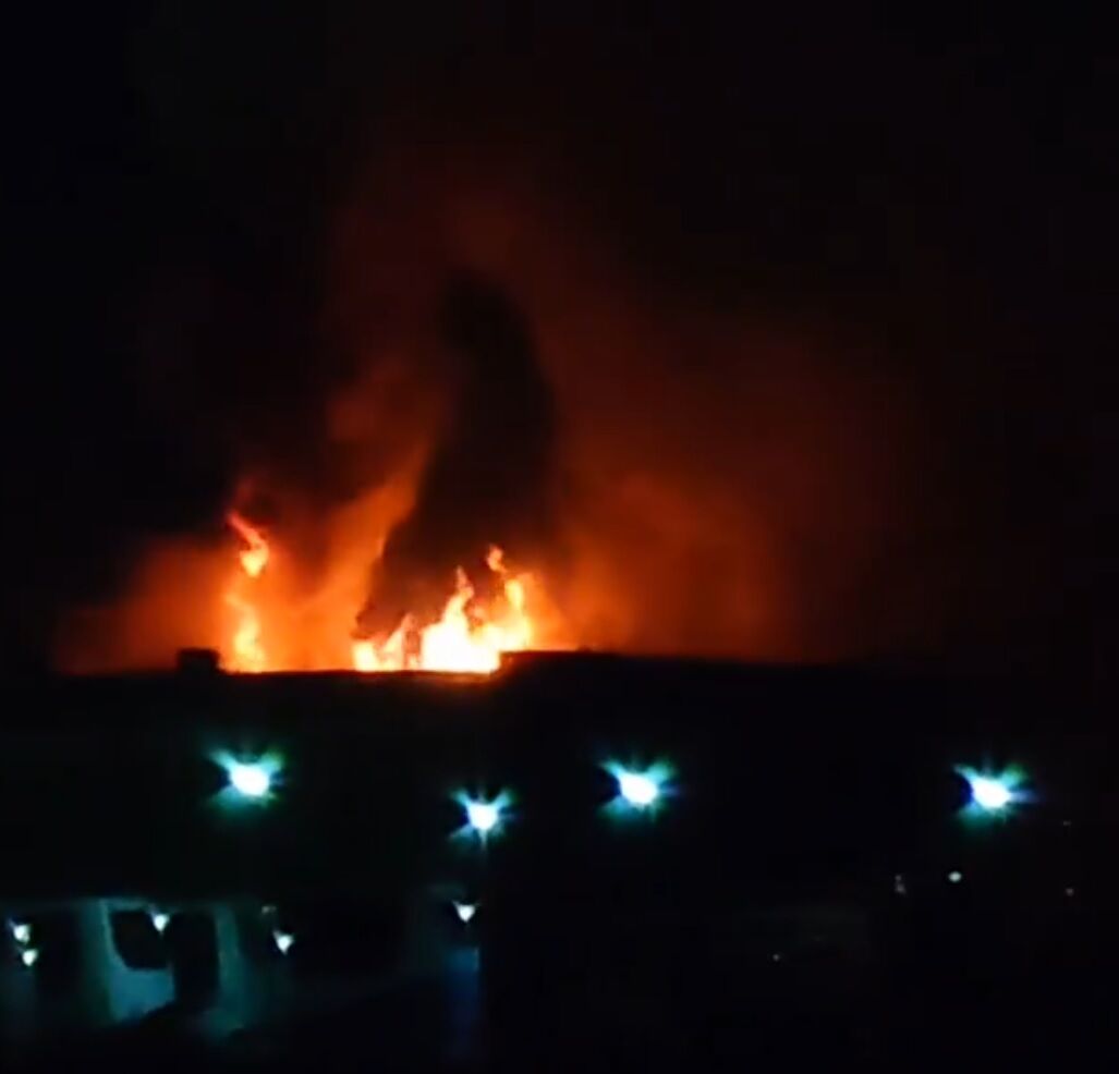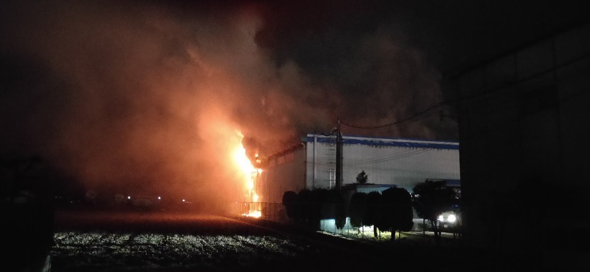 【火事情報】岡山県岡山市南区藤田錦六区ケーズデンキセロリー付近 倉庫建物から火の手あがる火災11月28日 #岡山 #藤田 #火災