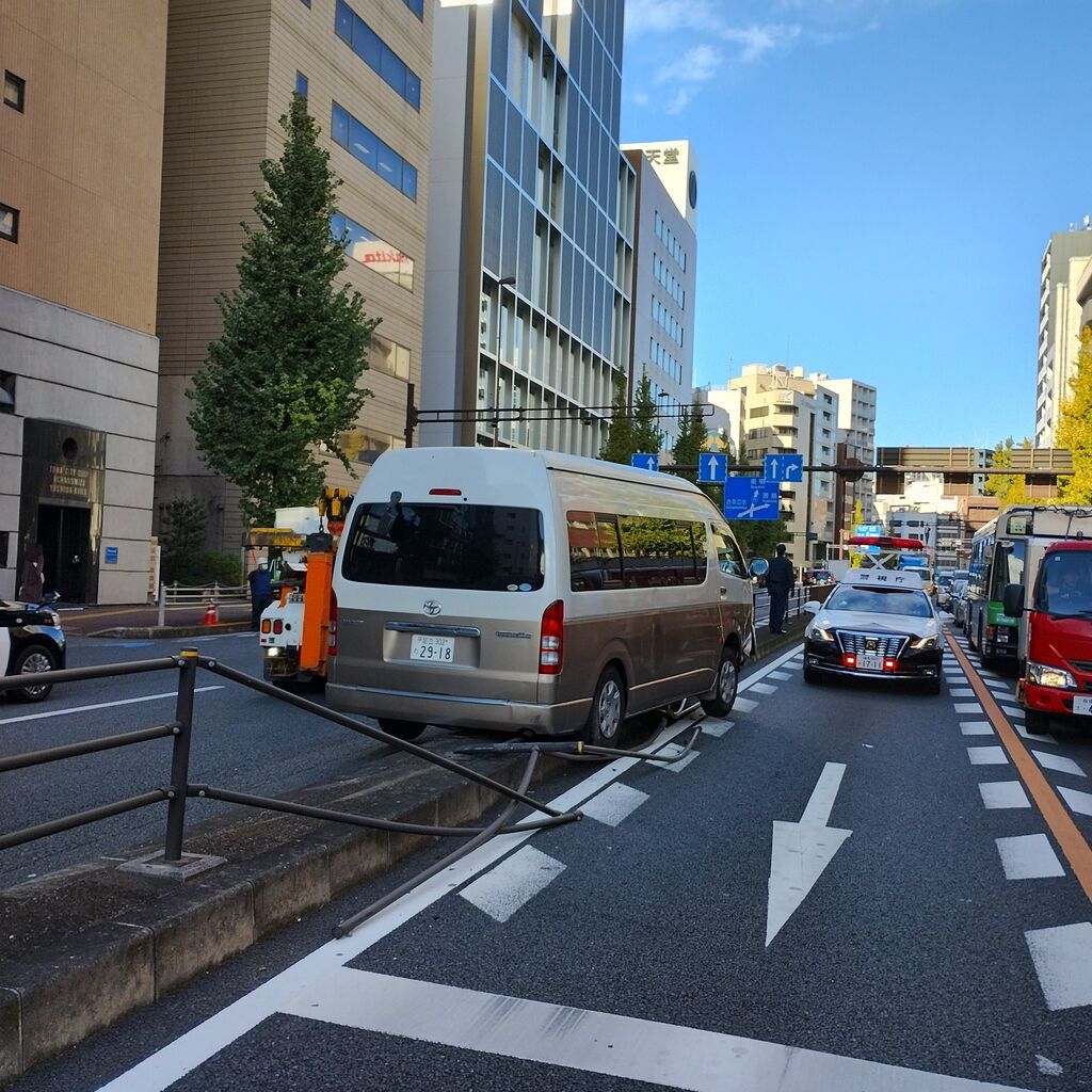 【現場の様子】#交通情報 #国道17号 中山道 東京都文京区本郷3丁目 御茶ノ水駅北西付近 中央分離帯にワゴン車突っ込む事故で規制渋滞11月29日 #渋滞 #本郷 #御茶ノ水 #文京