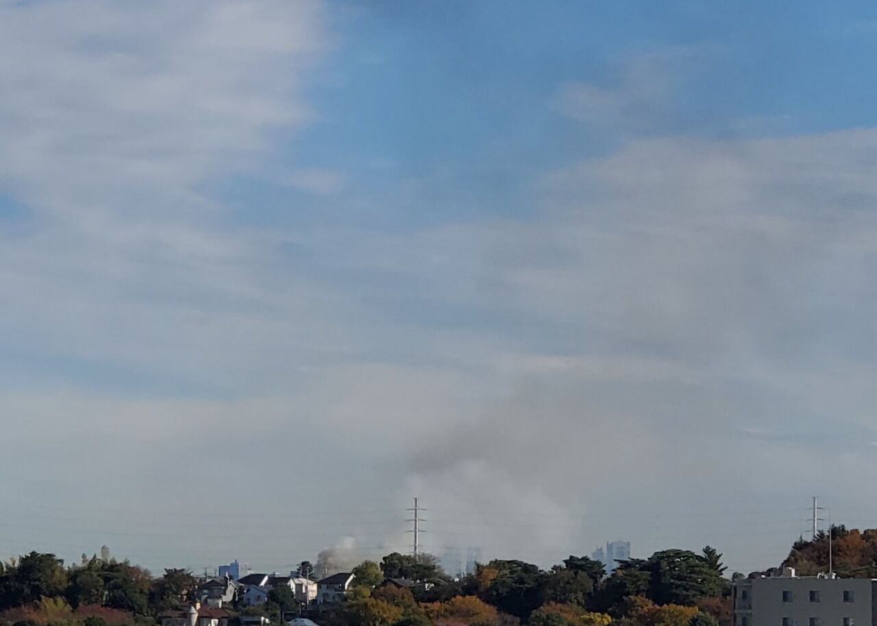 『狛江から成城、新宿方面の延長線上にものすごい煙が。』