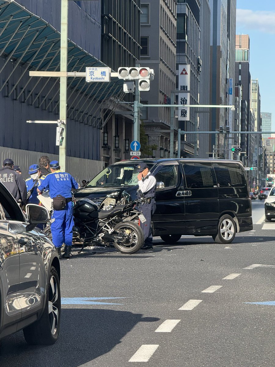 【現場の様子】#交通情報 鍛冶橋通り 東京都中央区京橋 京橋駅付近交差点 バイクと乗用車衝突事故で規制渋滞11月29日 #渋滞 #京橋 #銀座 #日本橋 #有楽町