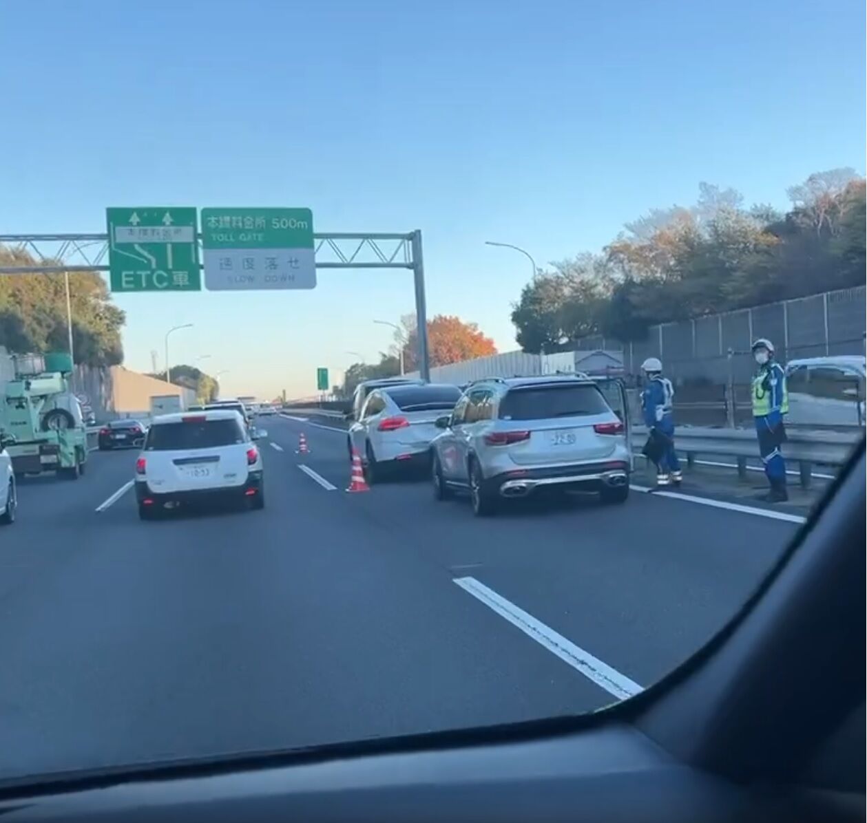 【現場の様子】#交通情報 #常磐道 下り 三郷料金所付近 車両3台追突事故で規制渋滞11月30日 #渋滞 #埼玉 #三郷