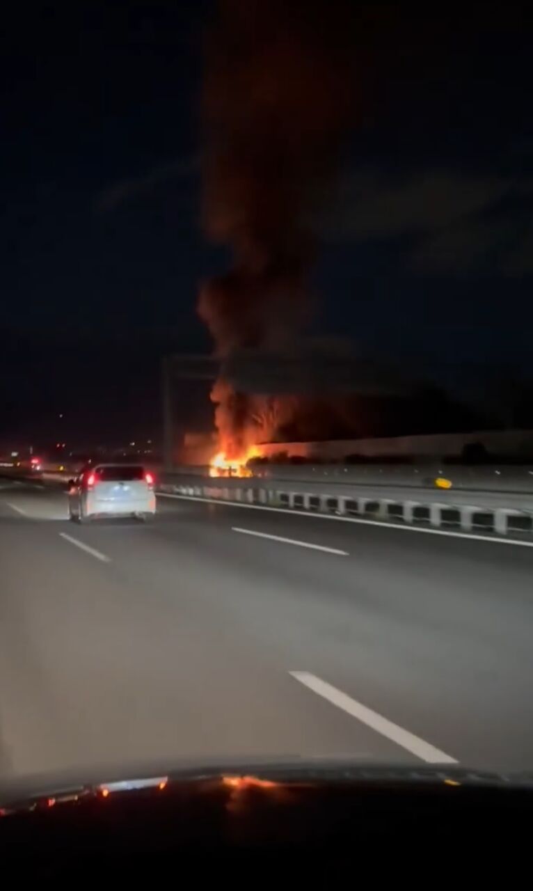 高速道路で大火事