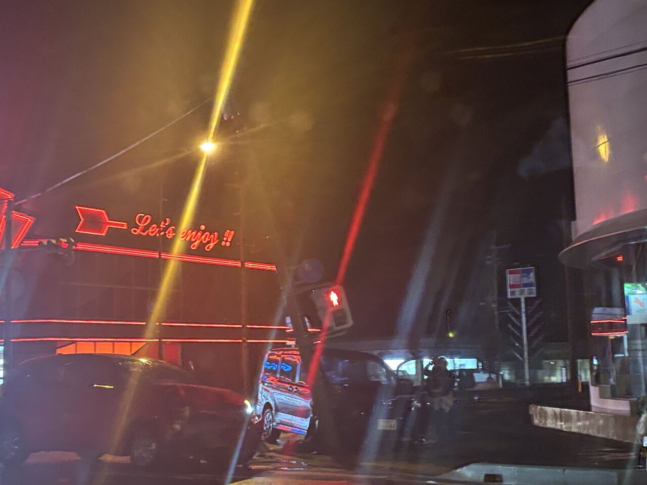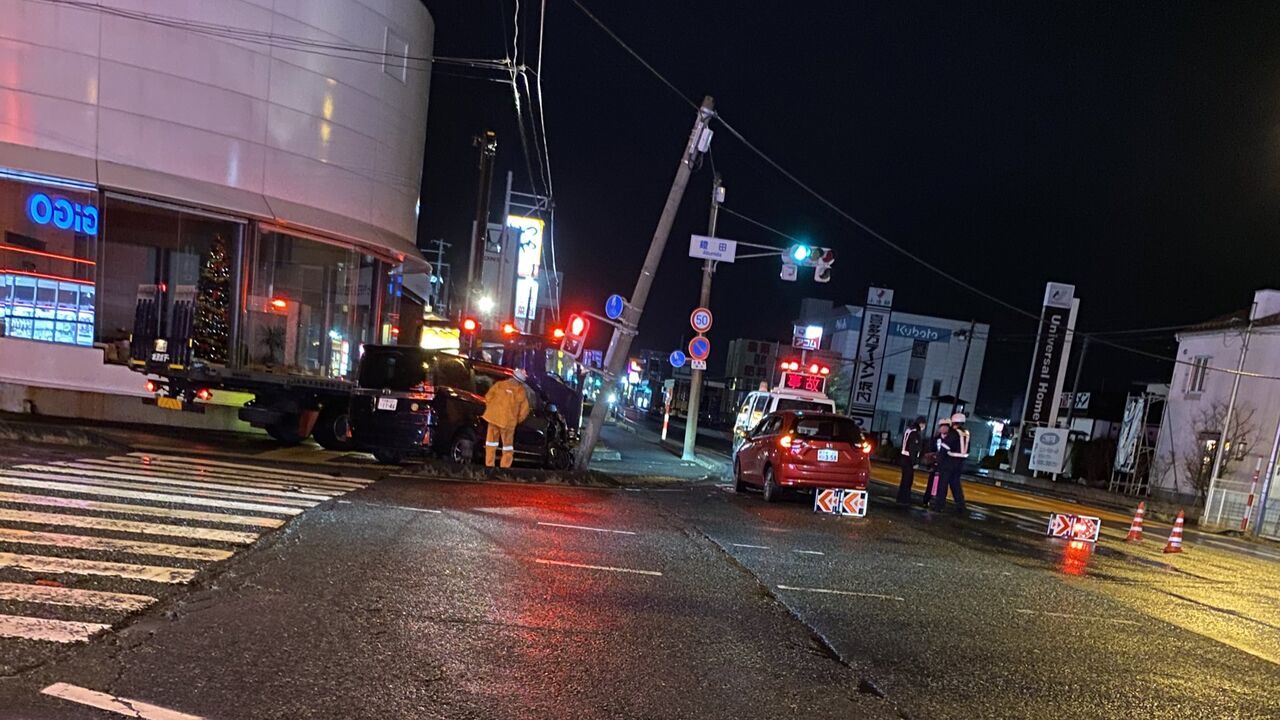 出会い頭の事故でホンダ側の電柱折れかけてます😨』