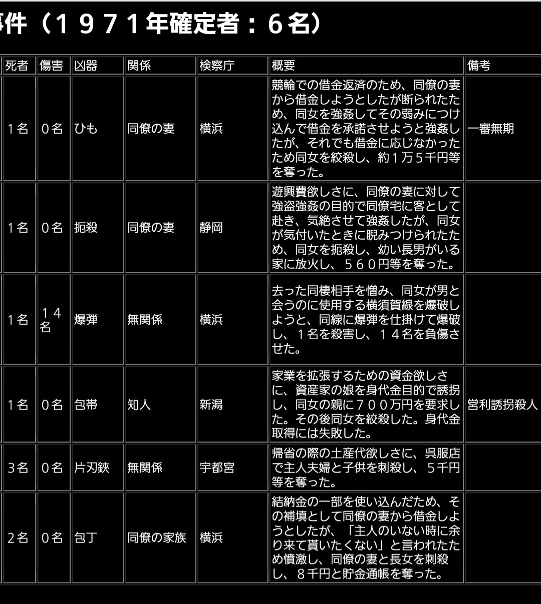【地獄】昭和の凶悪事件、逆転死刑が多すぎる模様。。。 2024/12/1 速報 1: 昭和の死刑事件一覧 document.write(” + ”); 関連記事 document.write(” + ”); 続きを読む ——— Source: アルファルファモザイク 【地獄】昭和の凶悪事件、逆転死刑が多すぎる模様。。。