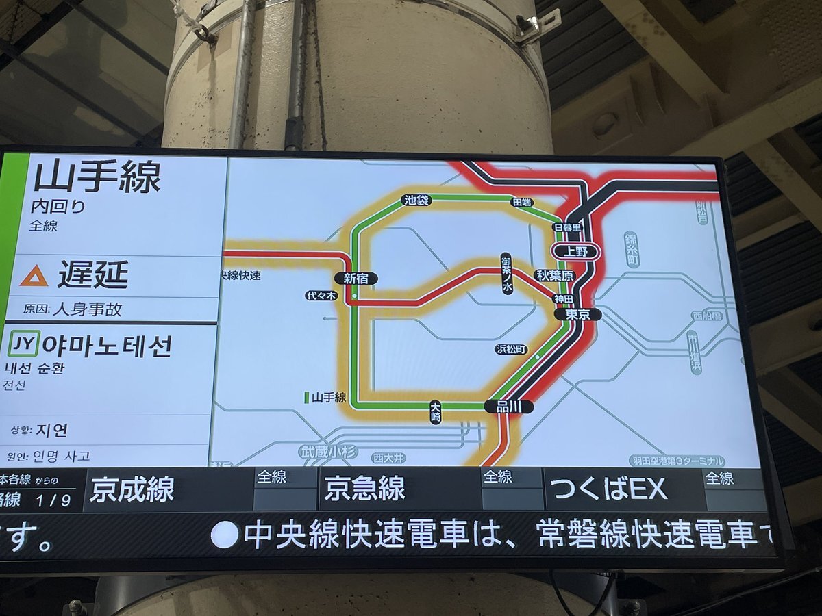 山手線は、常磐線快速電車での人身事故の影響で、内回り電車に遅れがでています。 #山手線 #Yamanote_Line https://t.co/t6M1XmagLg— JR東日本【常磐方面】運行情報 (公式) (@JRE_F_Joban) December 3, 2024