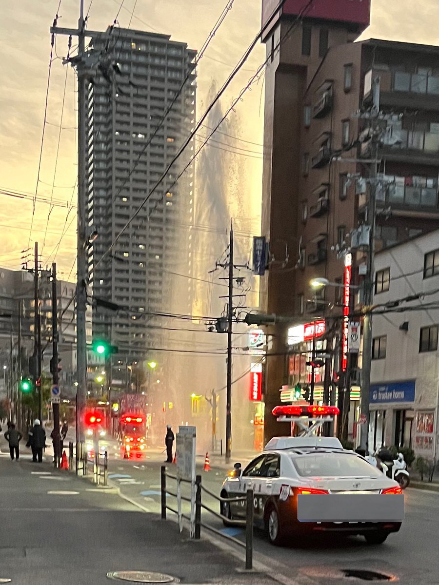 香里園駅近くのセブンイレブン前で水道管破裂したんか、凄い勢いで水吹き出してる! pic.twitter.com/yaB1QFPtBf