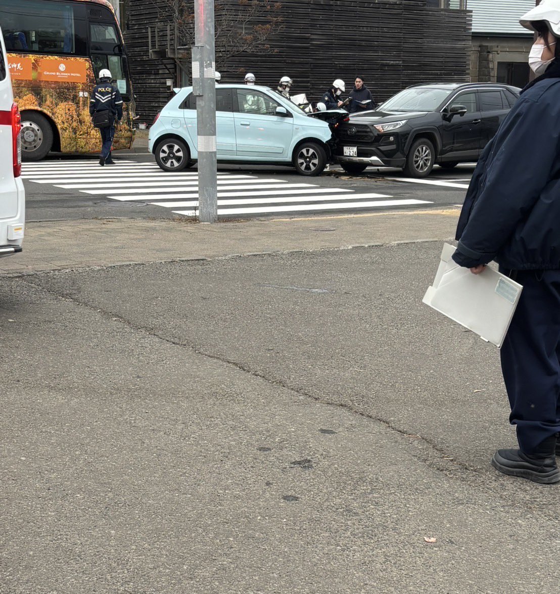 『バスと自動車事故完全通行止め通行不可迂回必須』