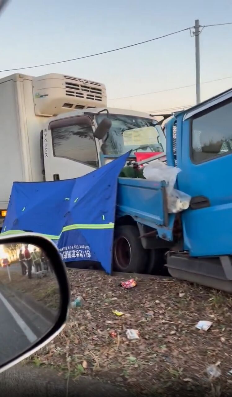 埼大通りでトラック3台の事故か