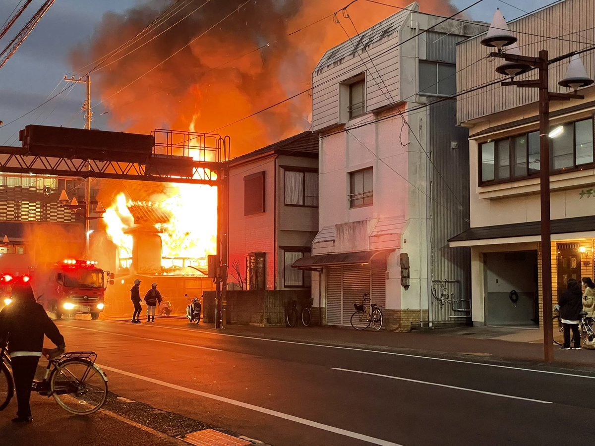 【火事情報】高知県土佐市高岡町乙 高岡第一小学校南側 県道39号線沿い付近 建物から激しい炎あがる火災 周辺道路規制渋滞12月11日 #高知 #土佐 #火災 #師走 #年末