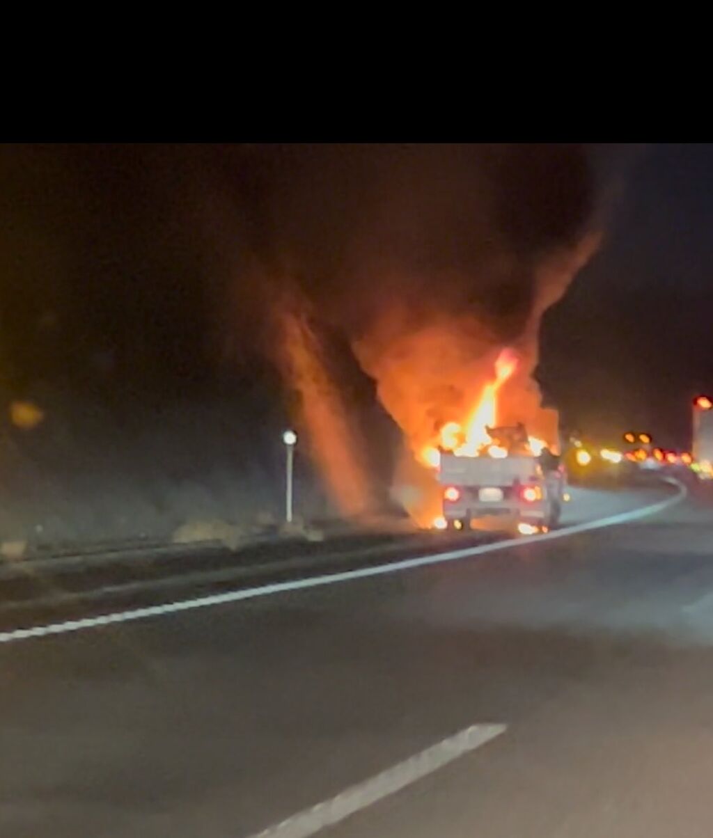 山陽道の車両火災だいぶ激しくトラック燃え上がっててビビる